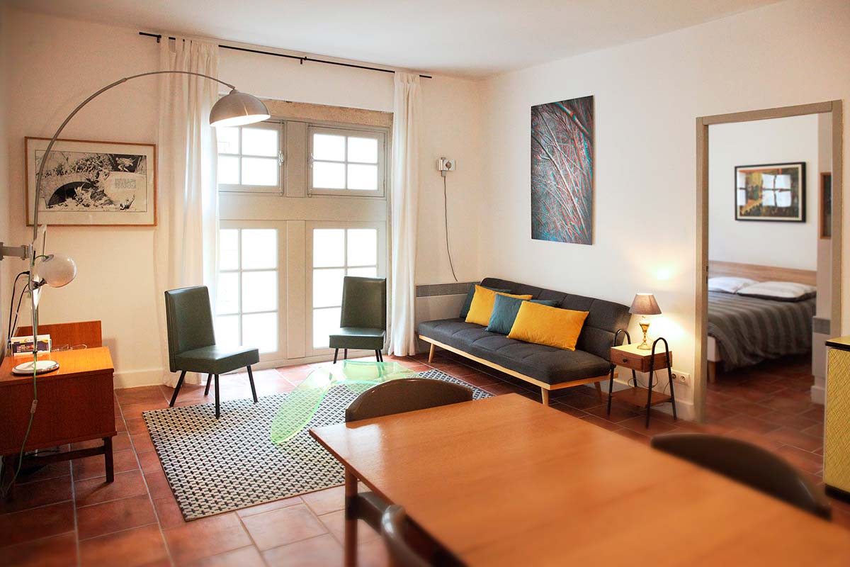 Tout le confort moderne, un ameublement vintage chiné au grès de nos coups de cœur, dans un très bel immeuble du XVIIe siècle situé en plein cœur du centre historique de Pézenas. À 30 mètres de la place Gambetta, juste derrière la maison des artisans, vous serez idéalement placés pour visiter cette magnifique ville.